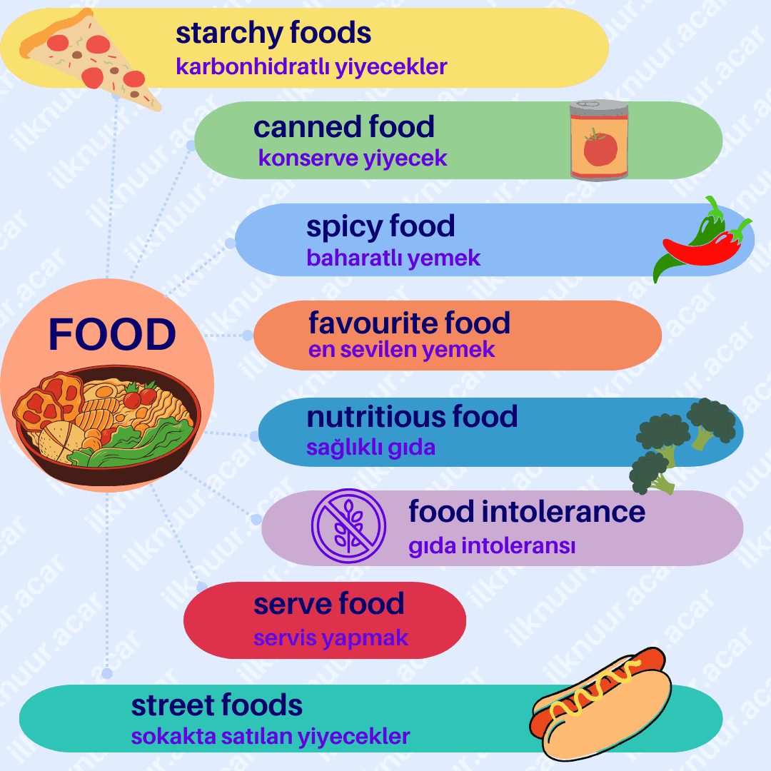 Yemek dünyası, herkesin mutlu olduğu o evrensel dile sahiptir.. 😋 Lezzet! İster bir gurme olun, ister sadece güzel bir tabak yemeğin keyfini çıkarmak isteyen biri, yiyecekler hayatın tadı tuzu ve bazen de baharatıdır! 🧂 Bu yazıda, sizi yemekler ile ilgili kelimeleri öğrenmeye davet ediyorum 🍽️
