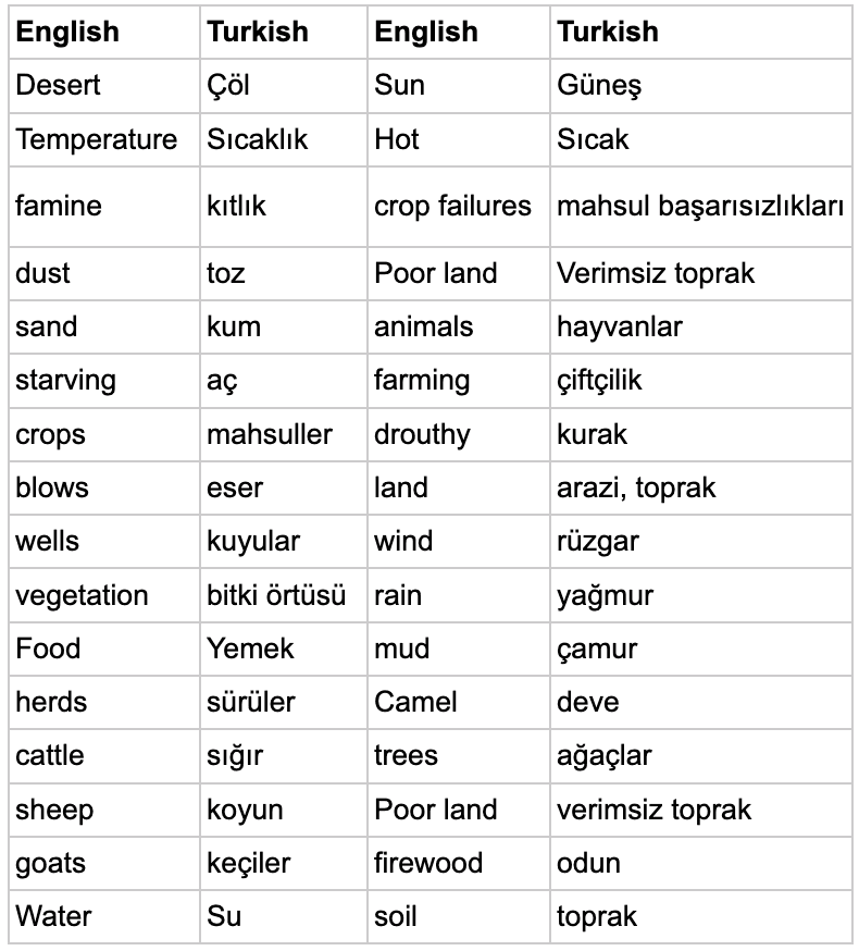 Desert (çöl) temalı kelimeler