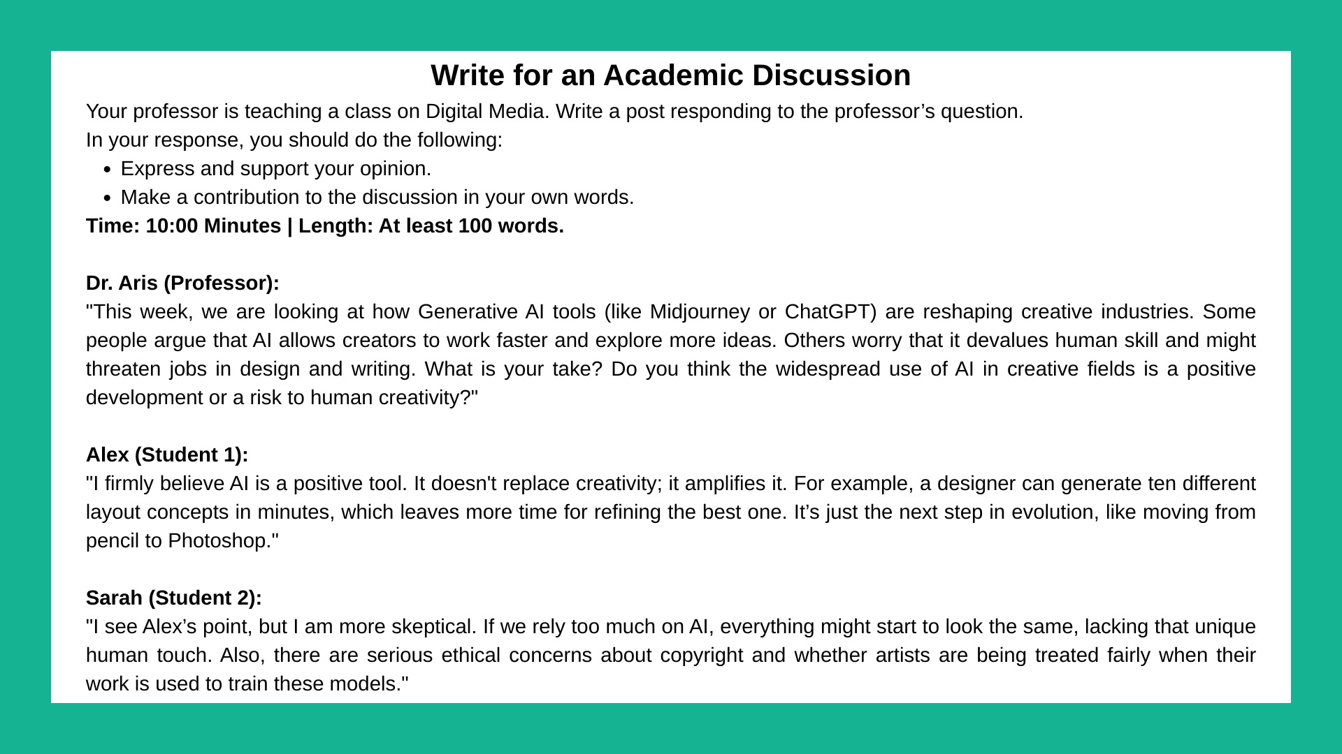 ~150 kelimelik kendi cevabınız (Bu görev eski TOEFL ile aynı)