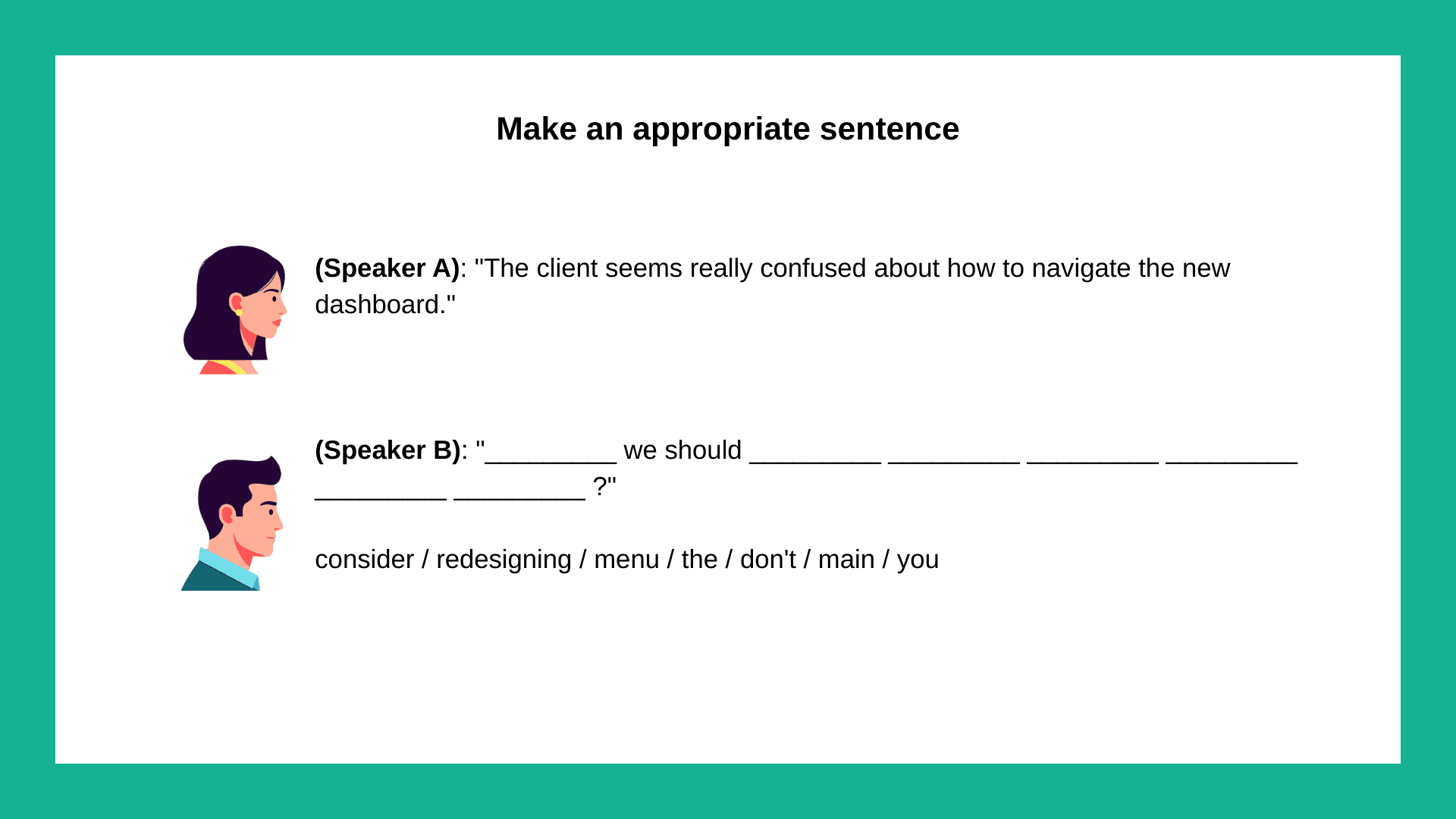 Build a Sentence (Cümle Kurma). Kelimeler veriliyor, doğru sıraya diziyorsunuz